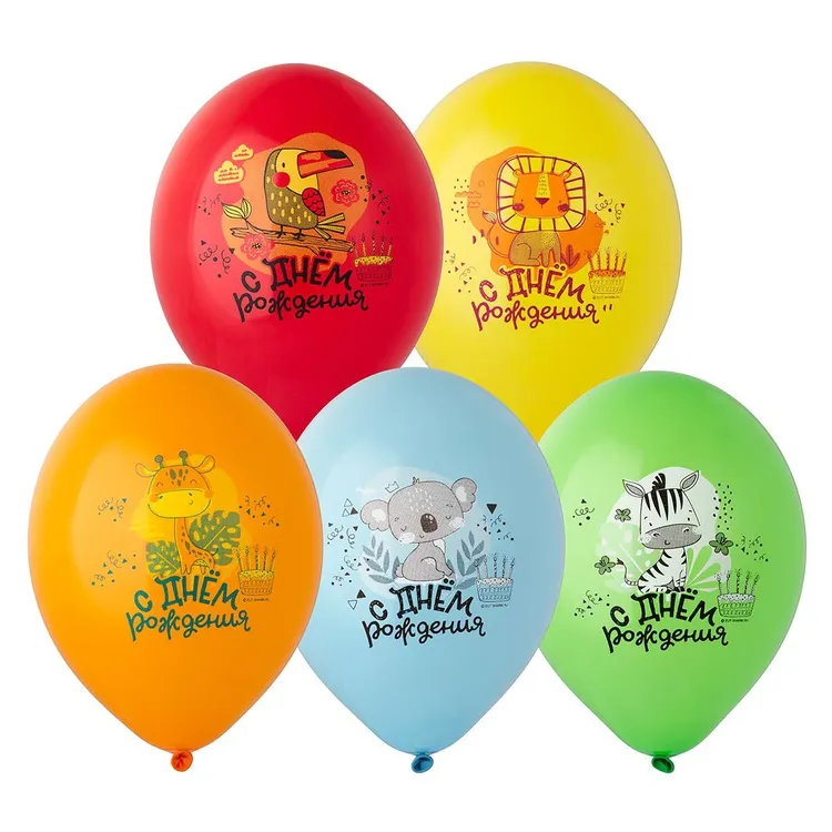 Высококачественный шар из натурального латекса. Ассорти из 10-12 цветов, типа пастель. Шары с двусторонним шелкографическим рисунком. Идеальный ассортимент для розничной продажи воздушных шариков.