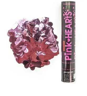 Пневмохлопушка 30 см. "Металлизированные сердца" Розовый / 823124
