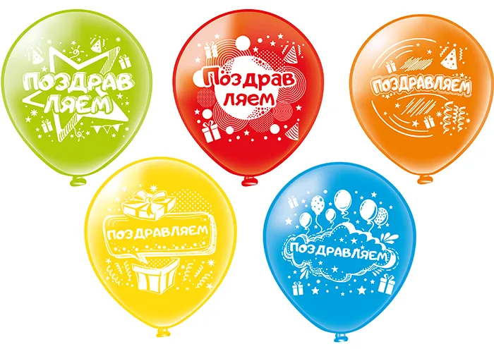 12" Поздравляем! 5 дизайнов 25шт (Тайланд) / ч42197