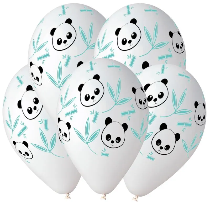 Воздушные шары из натурального латекса c шелкографическим одноцветным рисунком в виде бамбуковых палочек имитирующих среду обитания панды нанесенным по всему шару. В наборе исползуются цвета #01, #50, #72, #73 с рисунком черного цвета и цвет #14 (черный) с рисунком белого цвета. Предназначенны для использования как в оформлении, так и в розничной продаже.