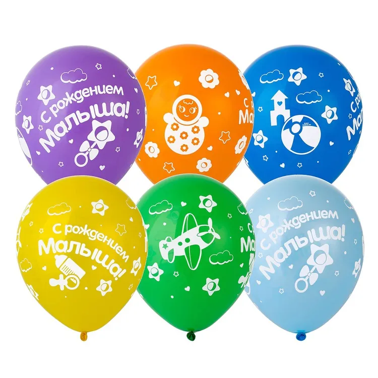 Высококачественный шар из натурального латекса, китайского производства, под торговой маркой "Дон Баллон", ассорти из 3-х цветов: голубой, зеленый и синий (в случайном соотношении), одного типа - пастель (матовый оттенок цвета). Шары с двусторонним шелкографическим рисунком. Идеальный ассортимент для розничной продажи воздушных шаров и украшения праздника.