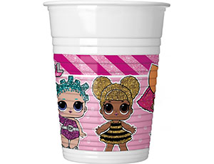 Пластиковый стаканчик объемом 200мл. Используется совместно с другими элементами коллекции по дизайну(тарелки,салфетки, скатерти и т.п.) как украшение стола или по своему непосредственному назначению. Стакан LOL Surprise! имеет металлизированный принт.