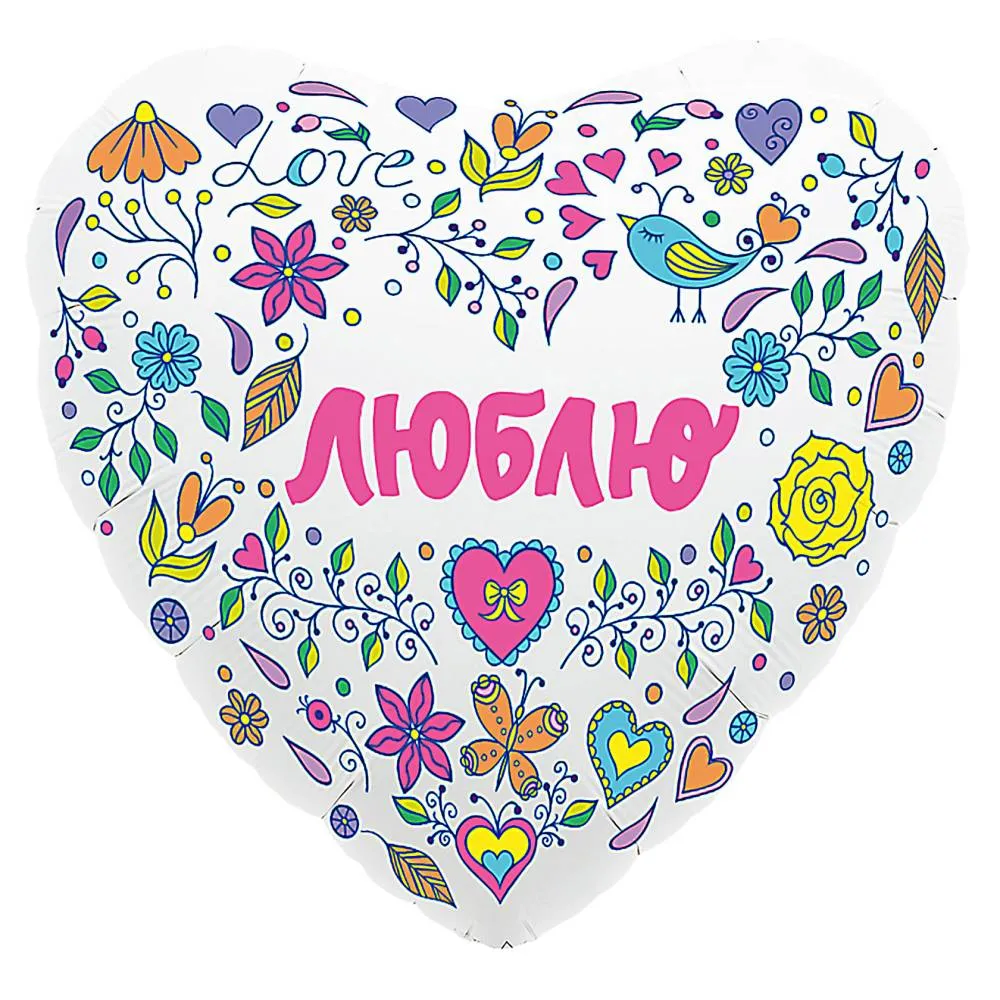 18" Рус Люблю орнамент в белом сердце (Россия)/1202-2768