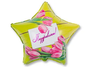 Г 18" РУС Поздравляю Тюльпаны/ 1202-2323