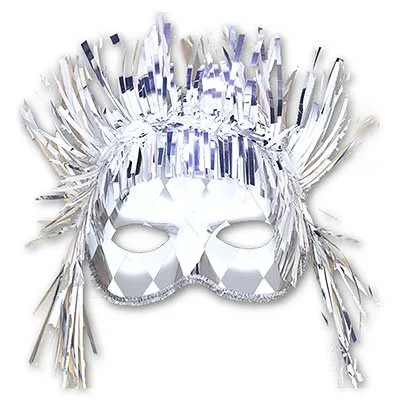 Карнавальный новогодний аксессуар, используется совместно с другими элементами карнавального костюма. Дизайн Домино - серебрянные ромбы, серебрянная бахрома. Новогодняя продукция. Маска упакована в пакет с хедером.