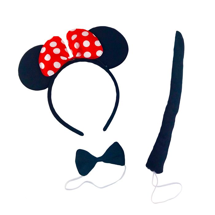 В набор входит черный ободок с ярким красным бантиком, бабочка, хвост с удобным креплением на резинке.