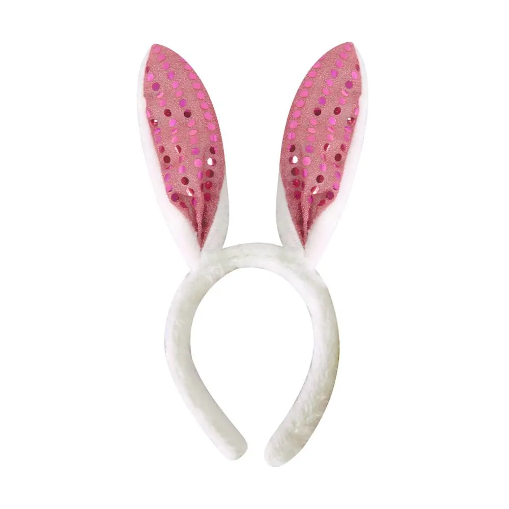 Ободок "Зайка" с пайетками, белый/розовый /6230783