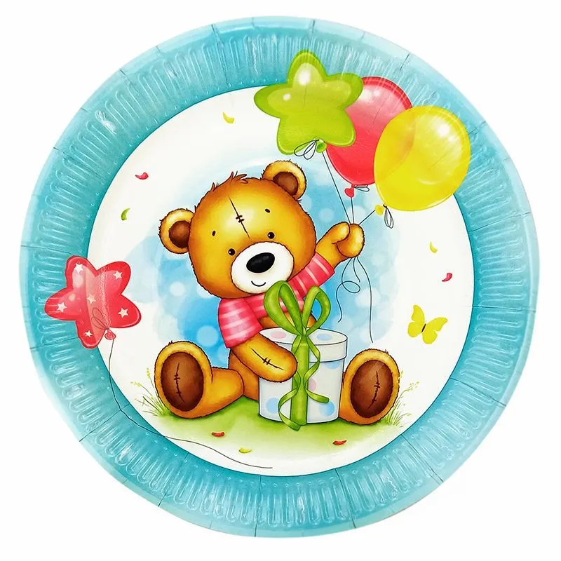 Праздничные тарелки «С Днем рождения» Милый Мишка идеально украсят праздничный стол. Тарелки подходят как для холодных, так и горячих блюд.