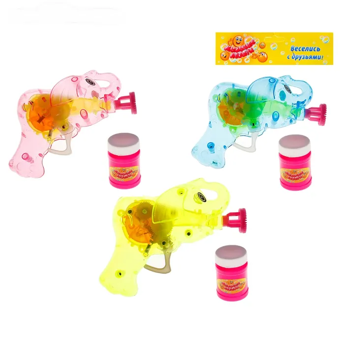 В набор входят: флакон с мыльным раствором, насадка и пистолет в виде слоника, с помощью которого ребенок будет пускать волшебные пузырьки. Также пистолет может использоваться в сюжетно-ролевых играх, в которых малыш будет представлять себя смелым полицейским или супергероем! А как эффектно пистолет светится в темноте!