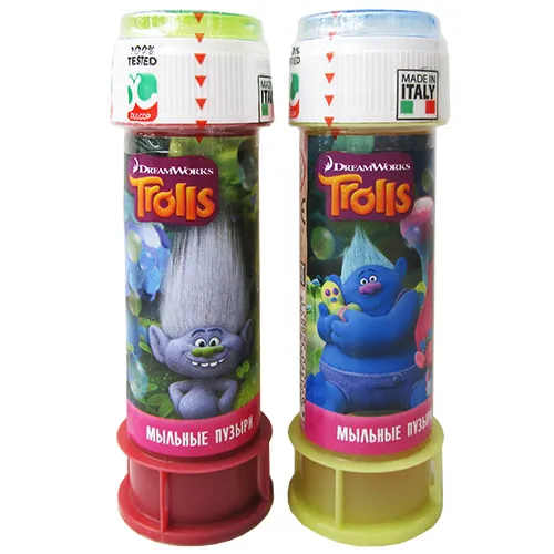 Мыльные пузыри с известным дизайном персонажей "Тролли". Прекрасный подарок для друзей на дне рождении или другом детском празднике.