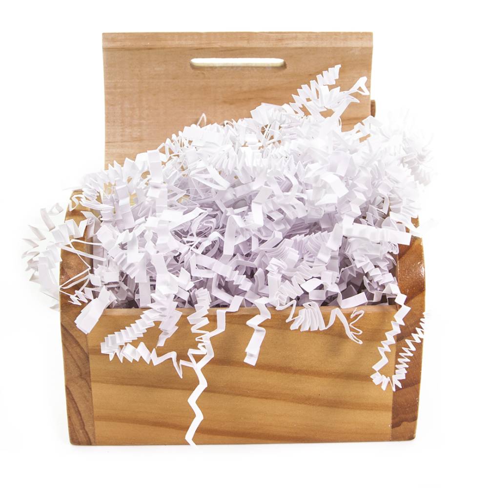 Наполнитель для коробок Бумажный Белый представляет собой тонко нарезанные полоски бумаги тишью.