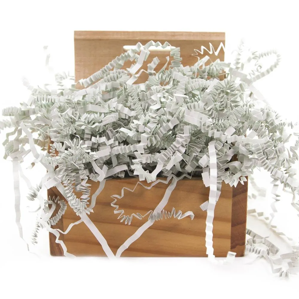 Наполнитель для коробок Бумажный Белый представляет собой тонко нарезанные полоски бумаги тишью.