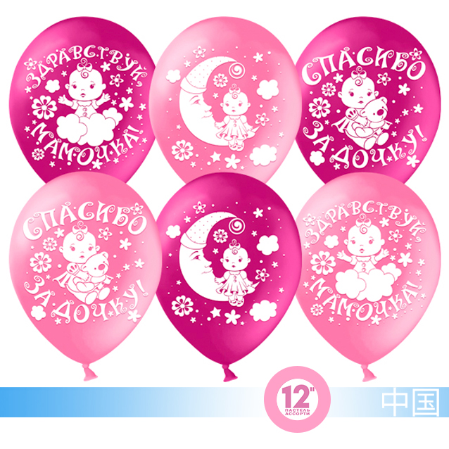 Высококачественный шар из натурального латекса, китайского производства, под торговой маркой "Веселый праздник", ассорти из 2 цветов (Розовый/Фуше), одного типа - пастель (матовый оттенок цвета). Шары с двусторонним шелкографическим рисунком. Идеальный ассортимент для розничной продажи воздушных шаров, а так же отлично подойдут для выписки и оформления детской.