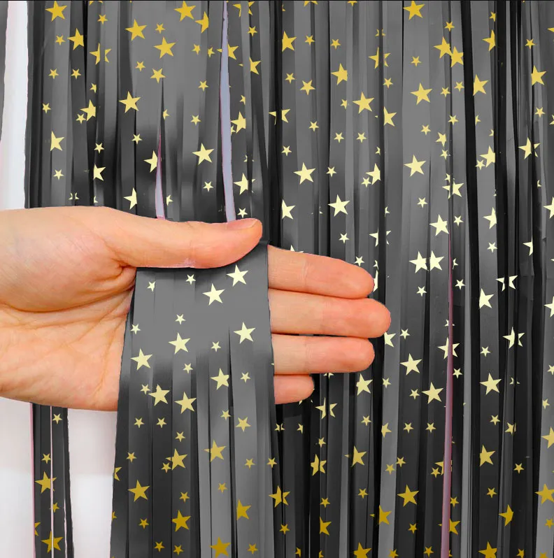 Занавес "Дождик" черный с золотыми звездами 2 м* 1м. (Китай) 20351-КТ