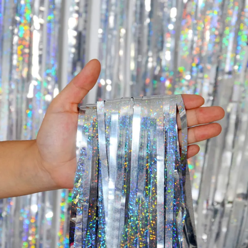 Занавес "Дождик" Серебро Голография 100*200 см (Китай) 6014416
