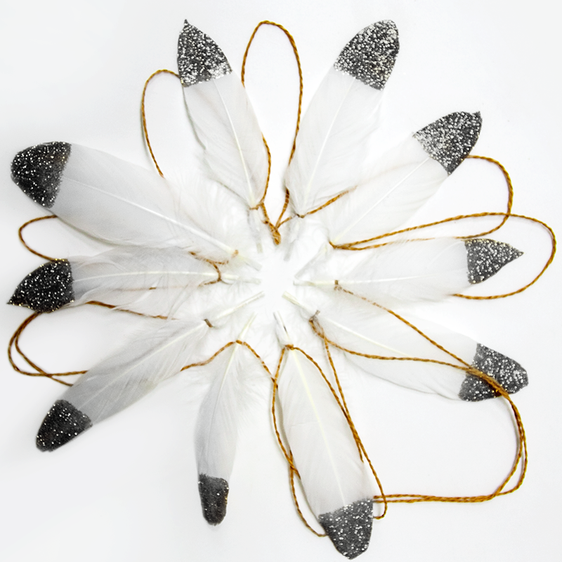 Изящная гирлянда с белоснежными перьями в серебряном обрамлении станет оригинальным украшением интерьерного оформления или дополнительным декором для воздушных шаров.