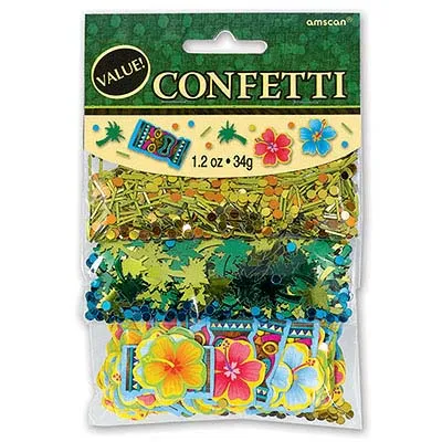 Разноцветное гавайское конфетти в трех дизайнах: золотые дождинки и круги; пальмы и круги; золотые круги, идолы и цветы гибискуса. Конфетти осыпают друг друга участники луау-вечеринки или его сбрасывают сверху. Конфетти, рассыпанное на столе, является необычной и привлекательной формой украшения праздничного застолья. Вес: 34 гр.