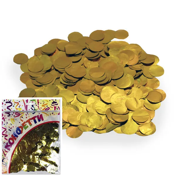 - Конфетти "Круги фольг золото" 2 см 100 гр.