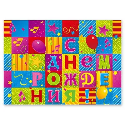 Теплые пожелания от лучших друзей по буквам складываются в цветную мозаику! Соберите праздник из ярких лоскутков! С днем рождения!