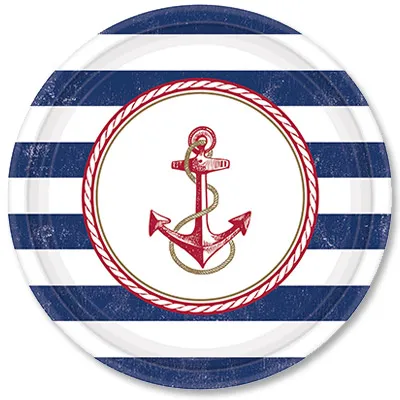 Якоря в обрамлении канатов и бело-синих полос - для тех, кто любит море. В упаковке 8 больших ламинированных тарелок диаметром 25 см. Отлично подойдут для пиццы и экзотических морепродуктов.
