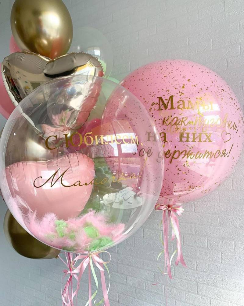 - Баблс с перьями и с индивидуальной надписью на атласной ленте 1 шт;