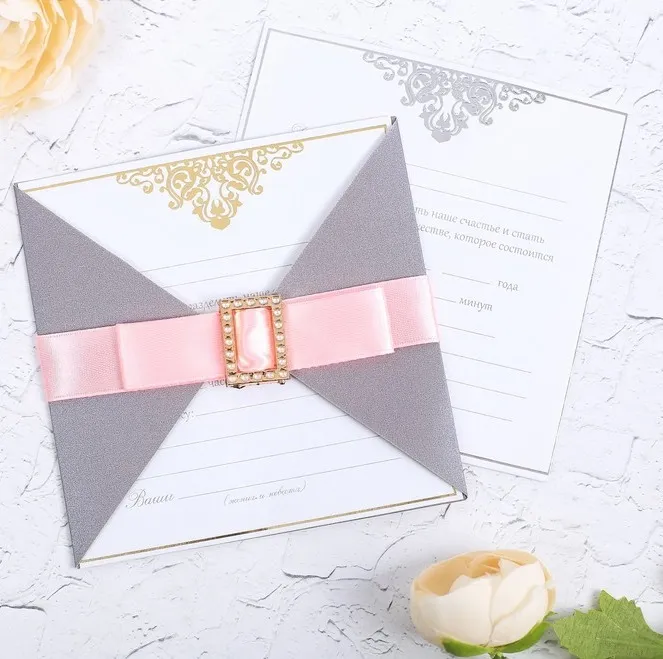 Когда дата и время бракосочетания уже известны, и вы определились со списком гостей, необходимо оповестить их о предстоящем празднике. Существует традиция делать персональные приглашения с указанием времени и даты мероприятия. Но перед свадьбой столько всего надо успеть, что на изготовление десятков открыток просто не остаётся времени. В этом случае вам придёт на помощь уникальное свадебное приглашение с бантом "Две судьбы станут одной...".