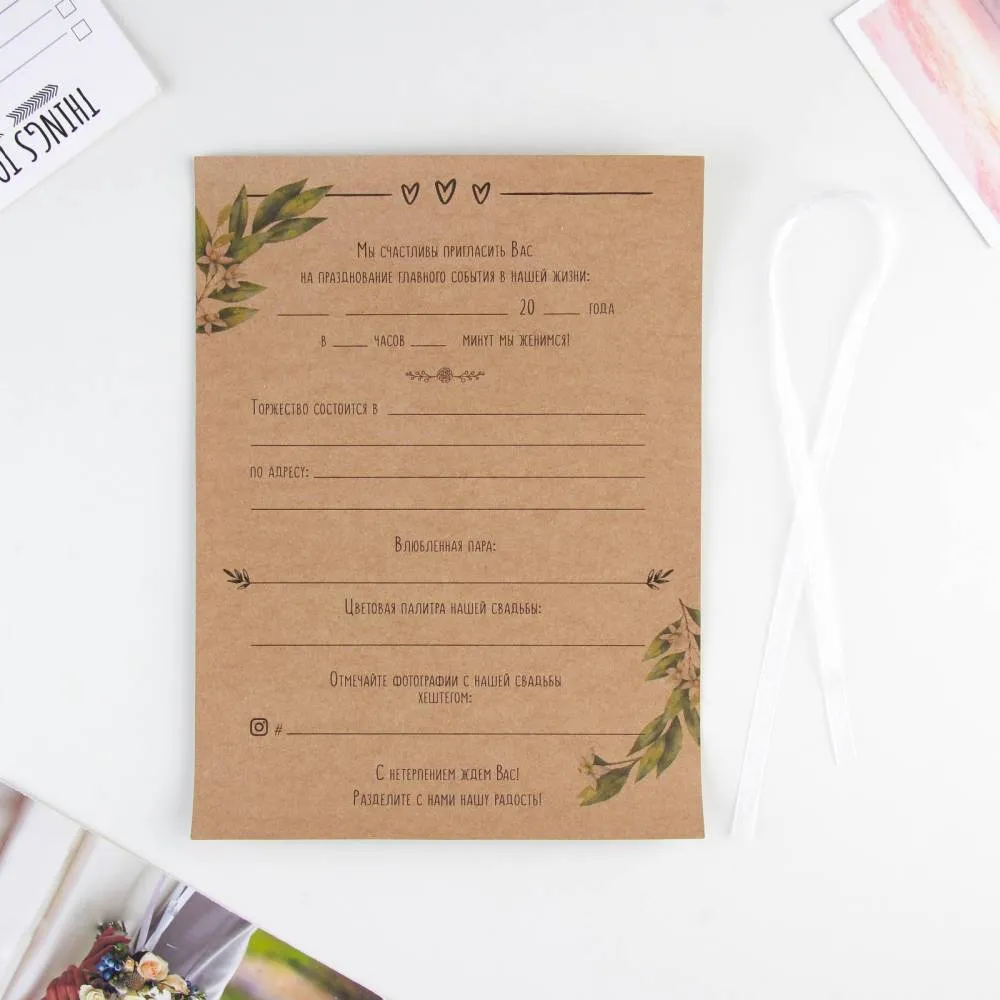 Мы продумали все детали, вам остаётся только заполнить необходимые строки и раздать приглашения гостям!