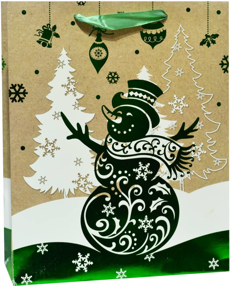 - Пакет "Новогодний снеговичок" Зеленый 24*18*9/210709S4