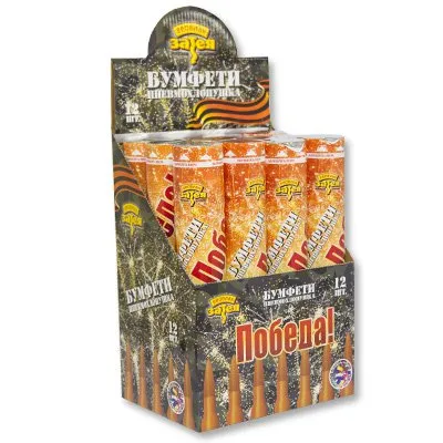 Пневматическое устройство, аналог хлопушки, абсолютно безопасное, предназначено для использования в помещении и на улице, дальность выстрела 6-8 м. Корпус хлопушки состоит из двух частей: пневматического баллона со сжатым воздухом и картонного цилиндра с наполнителем. Баллон изготовлен из металла, надежен и безопасен при хранении и в использовании, обладает высокой прочностью, чтобы выдержать давление воздуха. Выстреливает конфетти из разноцветной бумаги.