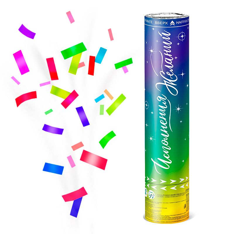 Наполнитель – фольгированные разноцветные стримеры. Перед использованием встряхните хлопушку.