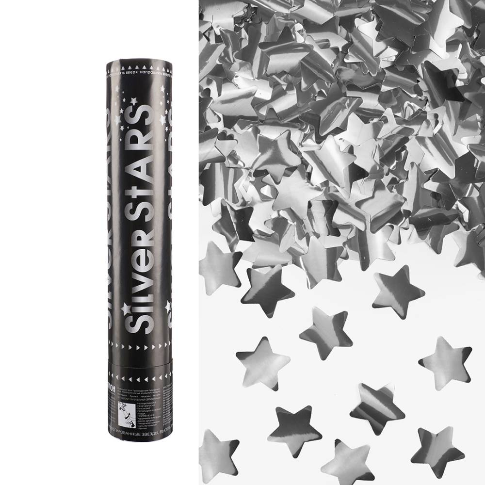 Пневмохлопушка 30 см. "Металлизированные звезды" Серебро/ 823120
