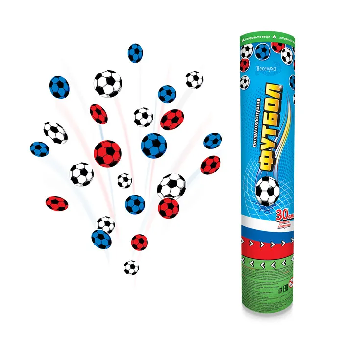 Хлопушка «Футбол» - лучшая находка для любителей футбола. Данную хлопушку можно использовать на любом празднике футбольной тематики: день рождения, корпоратив. Также она придется по нраву всем болельщикам для поддержки любимой команды на чемпионатах как профессиональных, так и любительских. Выстрел хлопушки с конфетти в виде футбольных мячей в национальном триколоре порадует всех патриотов России.