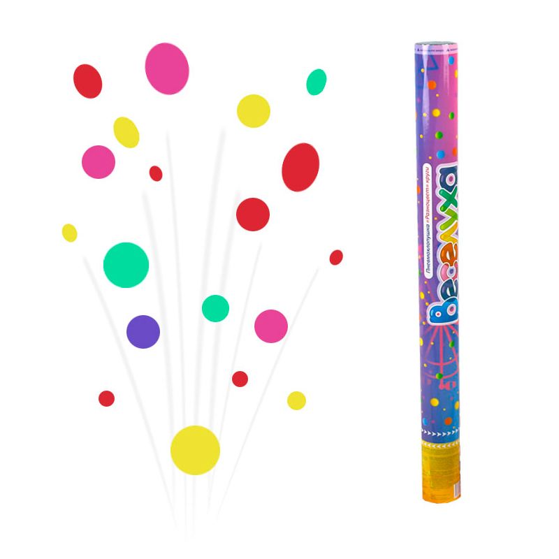 Эта хлопушка украсит любое торжество – свадьбу, юбилей, корпоративный или детский праздник. Фонтан из разноцветных фольгированных конфетти высотой 7-8 метров поможет придать празднику сказочную атмосферу.