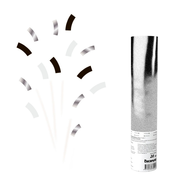 Пневмохлопушка Серебряный глиттер 20 см. (8220-SG)