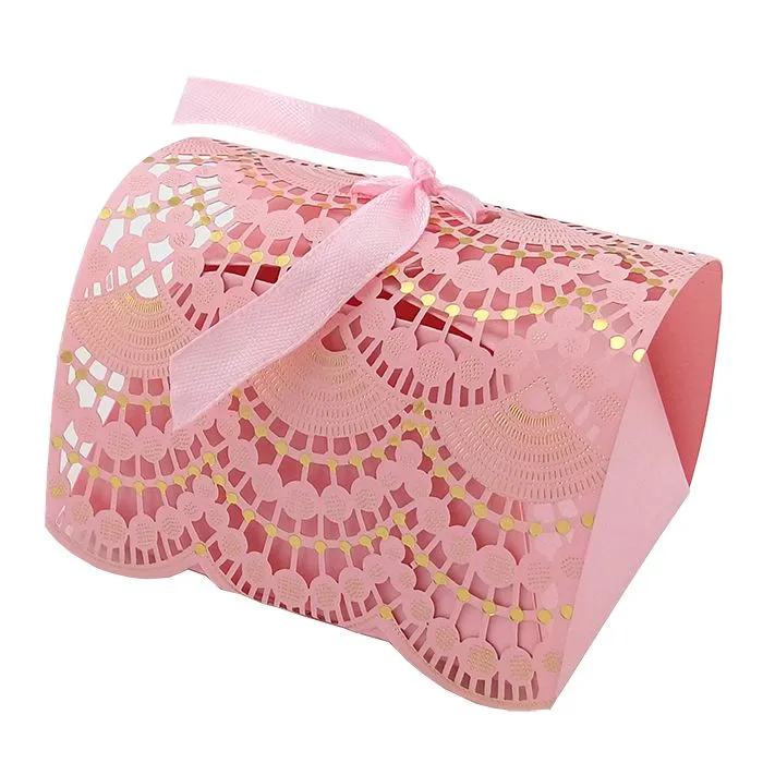 Изящный Набор складных коробочек "Бонбоньерка" Розового цвета из плотного картона с атласной ленточкой в тон, несомненно, украсит Ваше торжество!