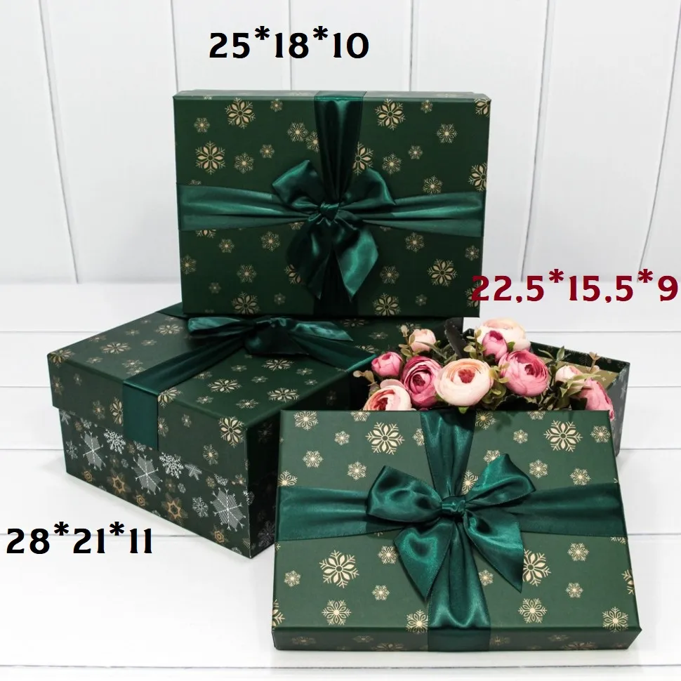 - Коробка 25*18*10 см "Снежинки" зеленая