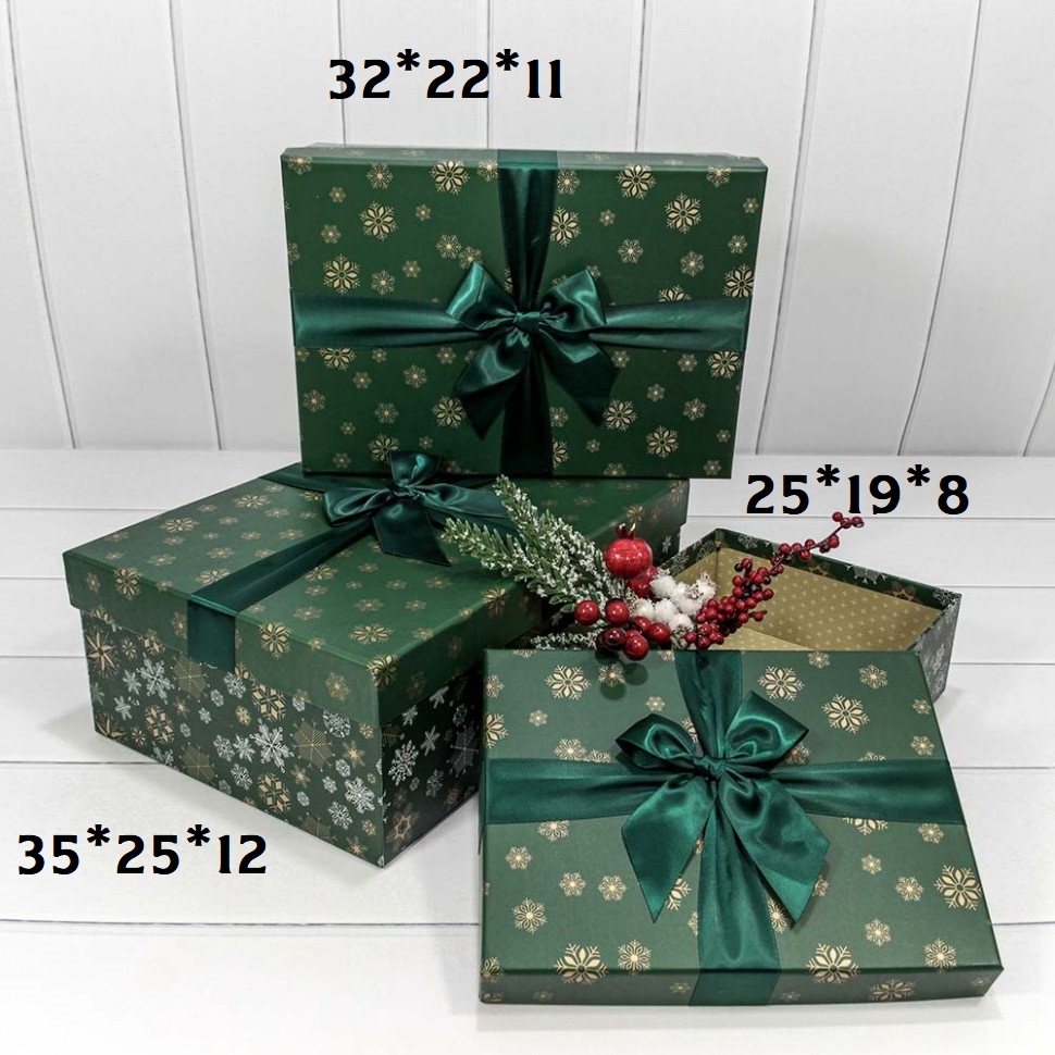 - Коробка 25*19*8 см "Снежинки" зеленая