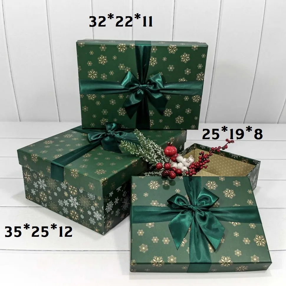 - Коробка 35*25*12 см "Снежинки" зеленая
