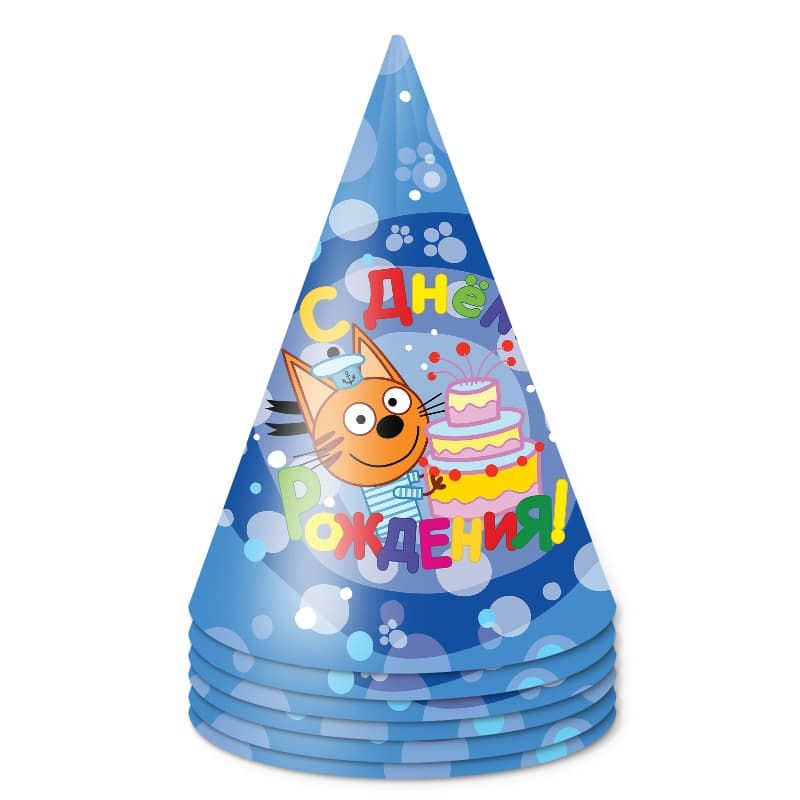 Бумажный колпачок - это обязательный атрибут праздника, он помогает создать веселую и беззаботную атмосферу. Рекомендуем использовать с другими товарами коллекции «Три Кота» (салфетки, стаканчики, тарелки, скатерти, свечи, языки гудки, мыльные пузыри, хлопушки, воздушные шары), для оформления вашего торжества в едином стиле! В комплекте 6 шт.