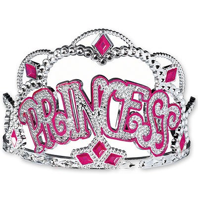 Какая девушка не мечтает стать настоящей принцессой с диадемой (или тиарой) в волосах? Нет ничего невозможного - серебряная тиара с буквами PRINCESS превратит Вас в королеву бала. Тиара выполнена из пластика, покрытого металлическим напылением. Края тиары укреплен ы гребешками, чтобы она не соскользнула с головы монаршей особы.