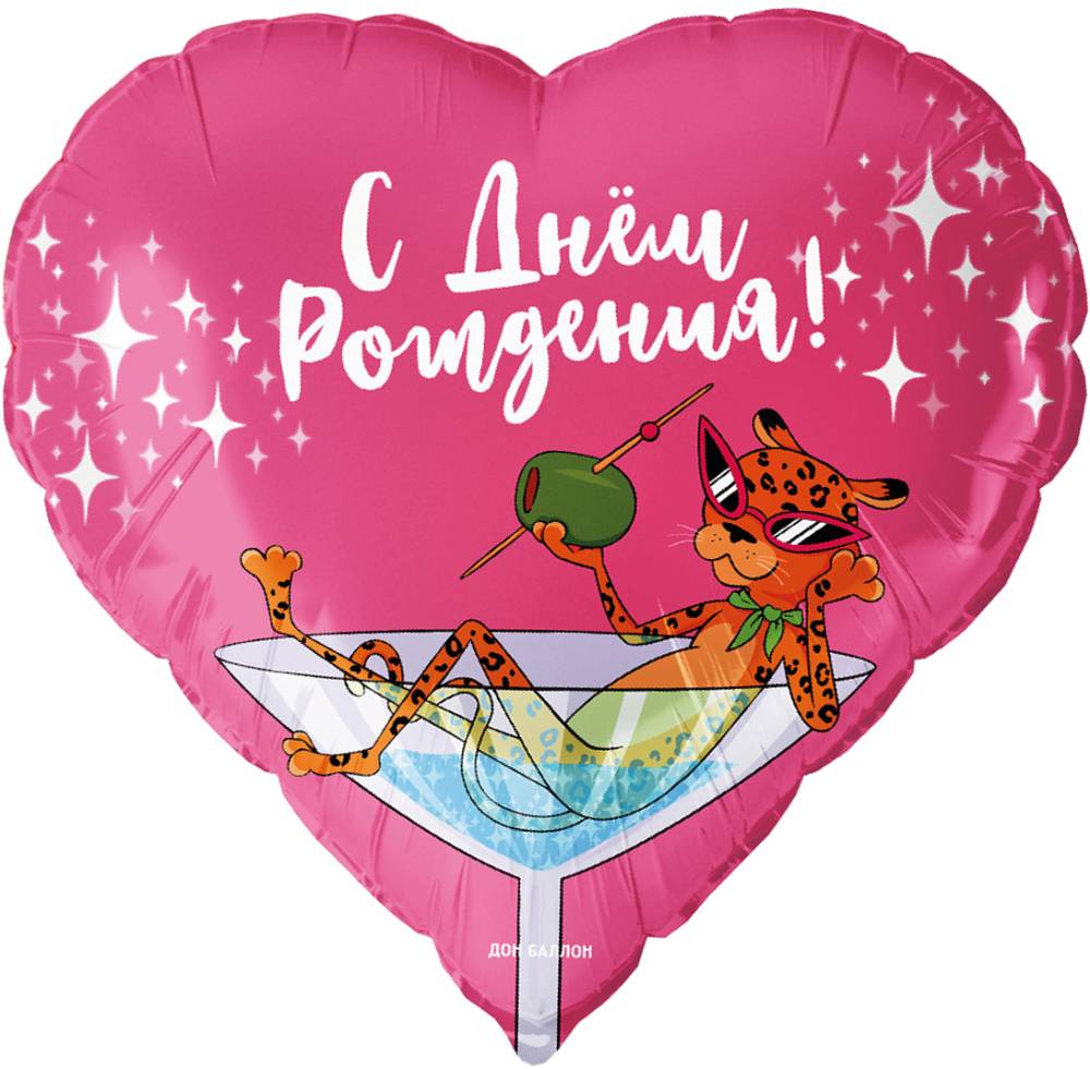 18" Сердце, С Днем Рождения! (леопард в бокале) / Китай 26479