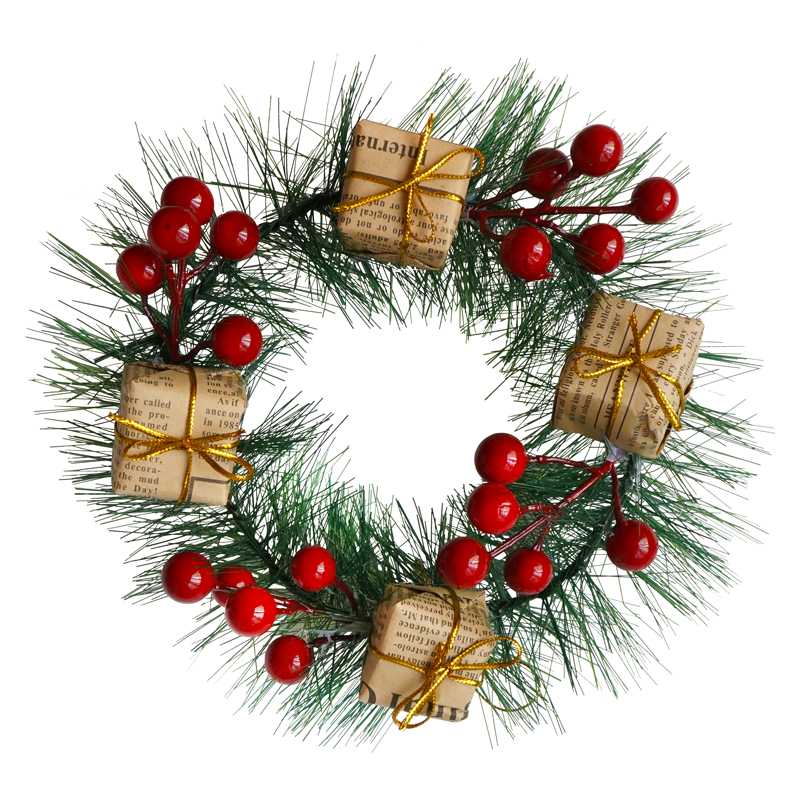 Венок новогодний заснеженный "Ягоды и подарки" 20*20 см/195094
