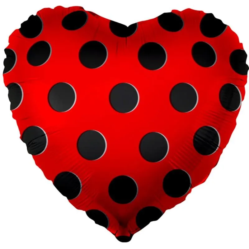 18" Сердце красное в черный горох / Китай (13025)