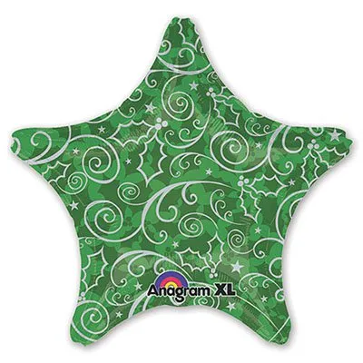 Шар 18" Звезда зеленая узор (Anagram)/16388