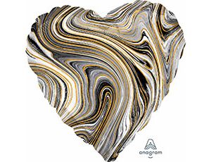 Шар 19" Сердце Мрамор Blak (Анаграм)/1204-1045