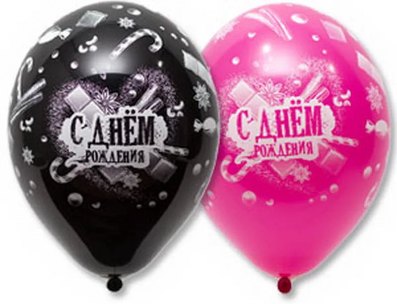 Высококачественный шар из натурального латекса. Одного типа - пастель. Шары с пятисторонним - круговая печать, шелкографическим рисунком С Днем Рождения. Шоколадные Сладости. Предназначен для розничной продажи воздушных шариков. Черного и розового цветов.