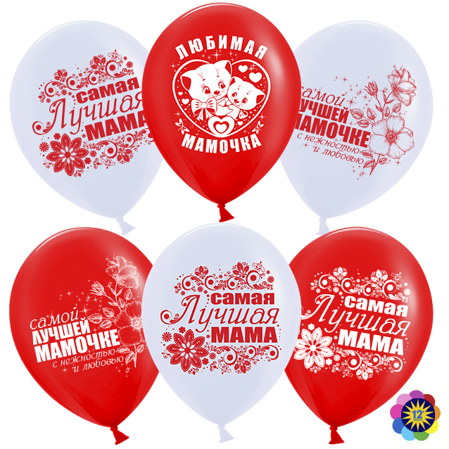 12" Мамочка Белый/Красный, пастель (50шт) (Малайзия)