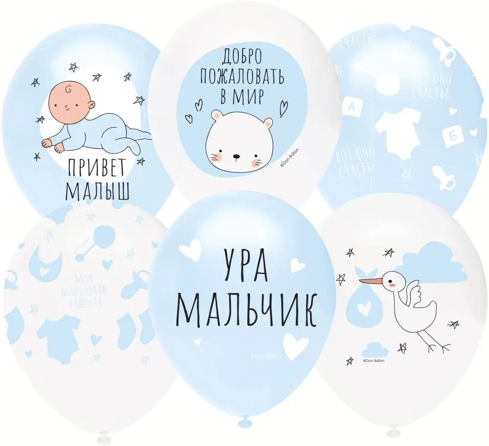 12" Ура,Мальчик!, белый/голубой (25шт) / (Турция) 812256