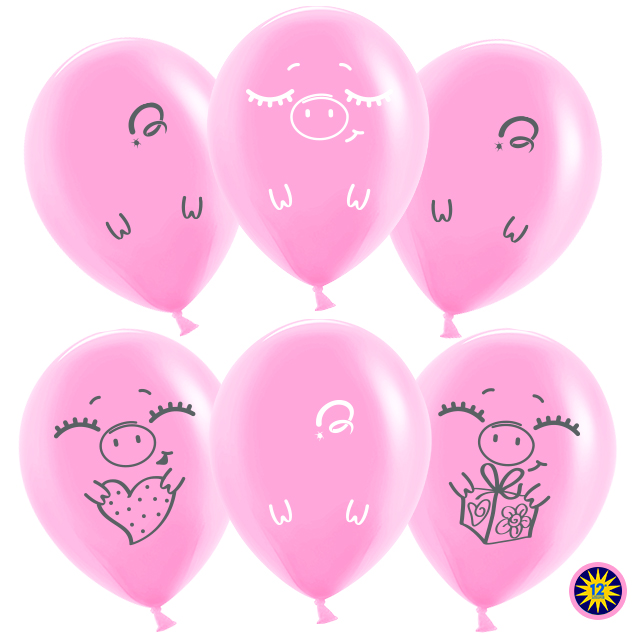 12" Забавные свинки,розовый пастель (100шт) (Малайзия)