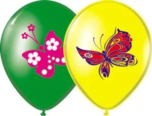 Высококачественный шар из натурального латекса. Ассорти из 10-12 цветов, типа пастель. Шары с двусторонним шелкографическим рисунком. Идеальный ассортимент для розничной продажи воздушных шариков.